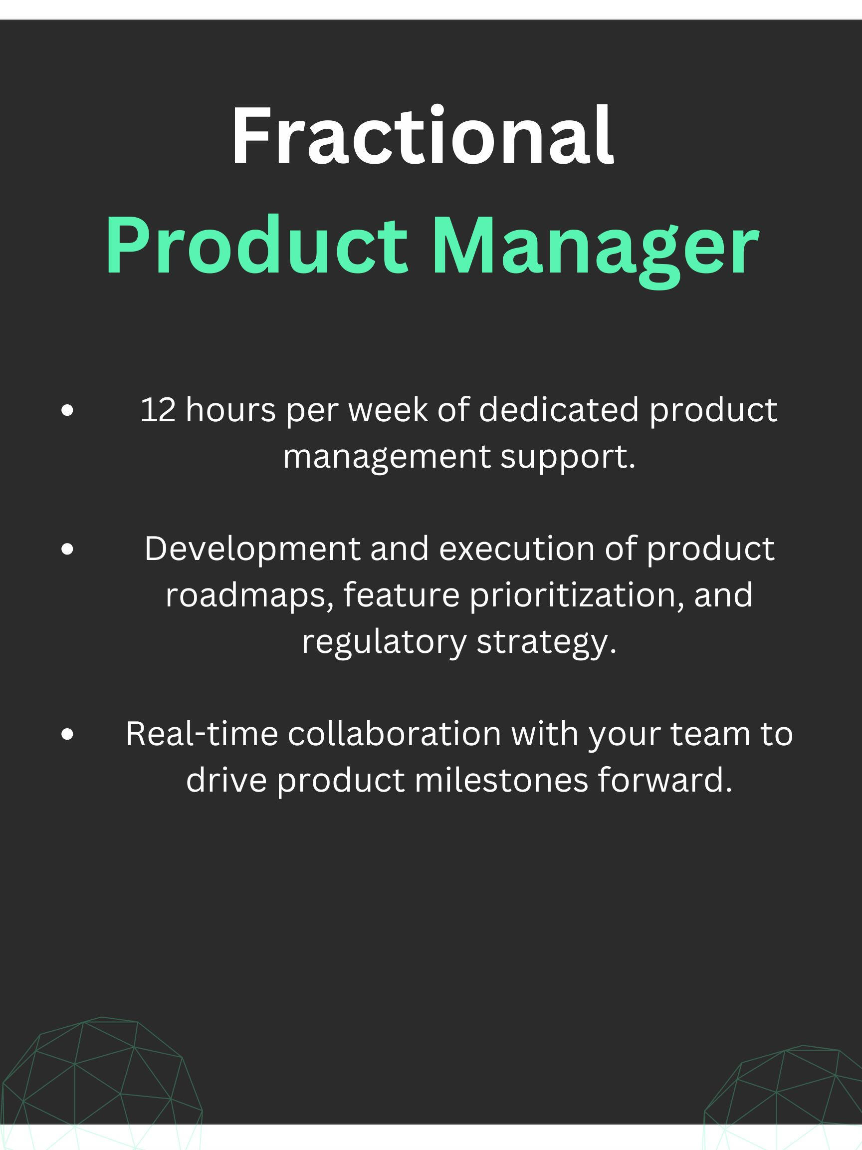 Hiring a full-time product manager can easily cost over $150k per year, plus benefits—and you might not have enough ongoing work to justify that expense. With my Fractional Product Manager service, you get top-tier product management and commercialization expertise on a fractional basis. You only pay for what you need, when you need it, without the long-term financial commitment of a full-time hire.Why shouldn’t I hire a full-time operations officer?